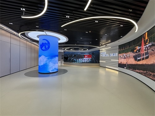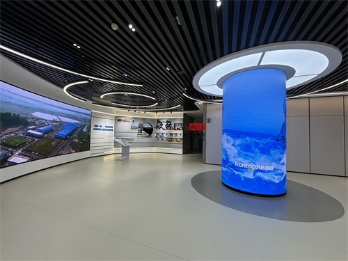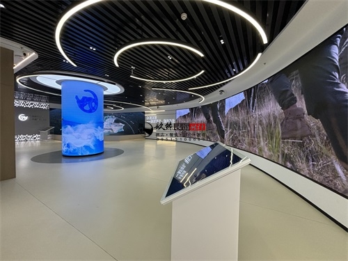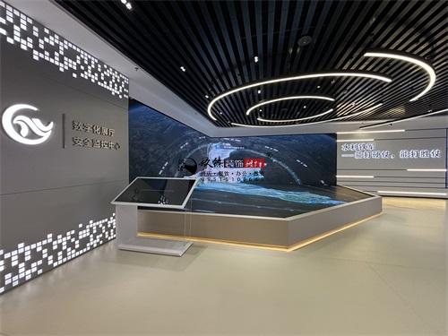 今天分享的是同心水利水电办公楼装修设计实景照片,该水利水电办公楼装修设计风格,是银川装修公司镹臻团队擅长的“科技极简风+行业主题叙事”融合设计,既贴合水利水电领域专业属性,又通过现代空间语言传递工程科技的质感,核心关键词可归纳为“沉浸式科技感、主题化场景、极简工业肌理”。从办公楼装修空间基底看,银川筑臻延续了其标志性的“极简工业风”特质——顶面采用黑色竖向金属格栅+嵌入式环形灯带,既用硬朗的工业肌理呼应水利工程的“硬核”属性,又通过流线型灯光弱化冰冷感;地面选择浅灰色哑光地坪,既保证办公空间的整洁耐用,又以低饱和色调衬托陈列物品的视觉重心。