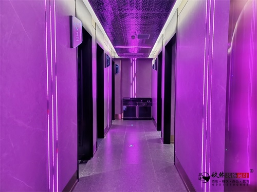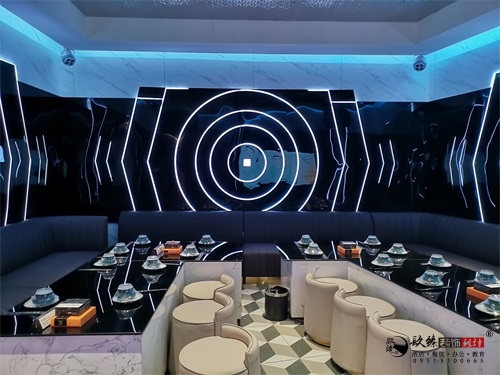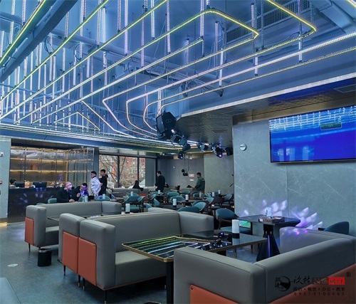 今天分享的是同心鼎龙餐厅设计装修项目实景鉴赏,这家音乐餐厅设计装修理念以未来感与时尚感的融合为核心,打造沉浸式娱乐餐饮空间。在视觉呈现上,运用大量霓虹灯光与几何线条,如墙面的环形光带、立体几何造型,搭配黑白色调的强烈对比,营造出赛博朋克式的前卫氛围,契合年轻群体对潮流空间的追求。该家音乐餐厅设计装修方面,从空间布局上看,将KTV包厢的休闲属性与餐厅的用餐功能结合,舒适的卡座与餐桌一体化设计,既满足社交娱乐需求,又保证用餐的便利性。银川装修公司镹臻团队紧扣着潮流沉浸式空间的设计装修理念,结合银川本地对餐饮空间的消费偏好,通过灯光系统的智能调控与主题化的软装搭配,实现了视觉冲击与功能实用的平衡。