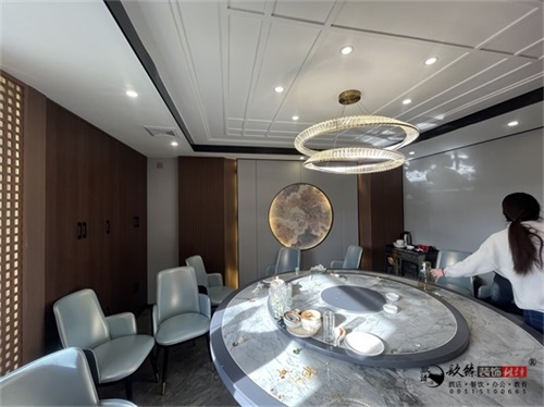 今天分享的是同心金龙回坊火锅店装修设计实景,感谢客户如此信任我们,把待设计装修的火锅店业务交给银川工装公司镹臻团队,我们的设计师与客户进行了深度的沟通,最终将火锅店装修设计风格定位“新中式国潮风”。整个空间的火锅店装修设计始终围绕“用餐体验”展开:比如散客区的半隔断设计,既保证了桌与桌之间的私密性,又不影响空间的通透感;墙面的山峦灯带与顶部的球形吊灯组合,既用暖光营造出热闹的火锅氛围,又通过灯光层次避免了空间的压抑感——这些细节都体现了火锅店装修设计中“功能优先、美学加持”的核心逻辑。这种火锅店装修设计手法,精准契合了当下餐饮店的新趋势。